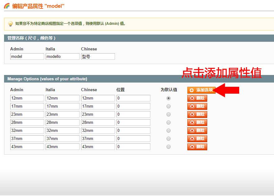 接着会看到model下的所有属性值,点击添加按钮做增加操作,如下图: