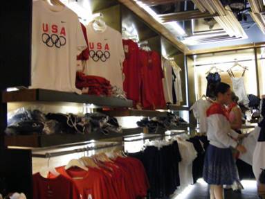 最后,我们来到茉莉餐厅的地下一层,采购带有美国奥组委标识的纪念品。这些纪念品在茉莉餐厅以外是买不到的。让我们看看有些什么。