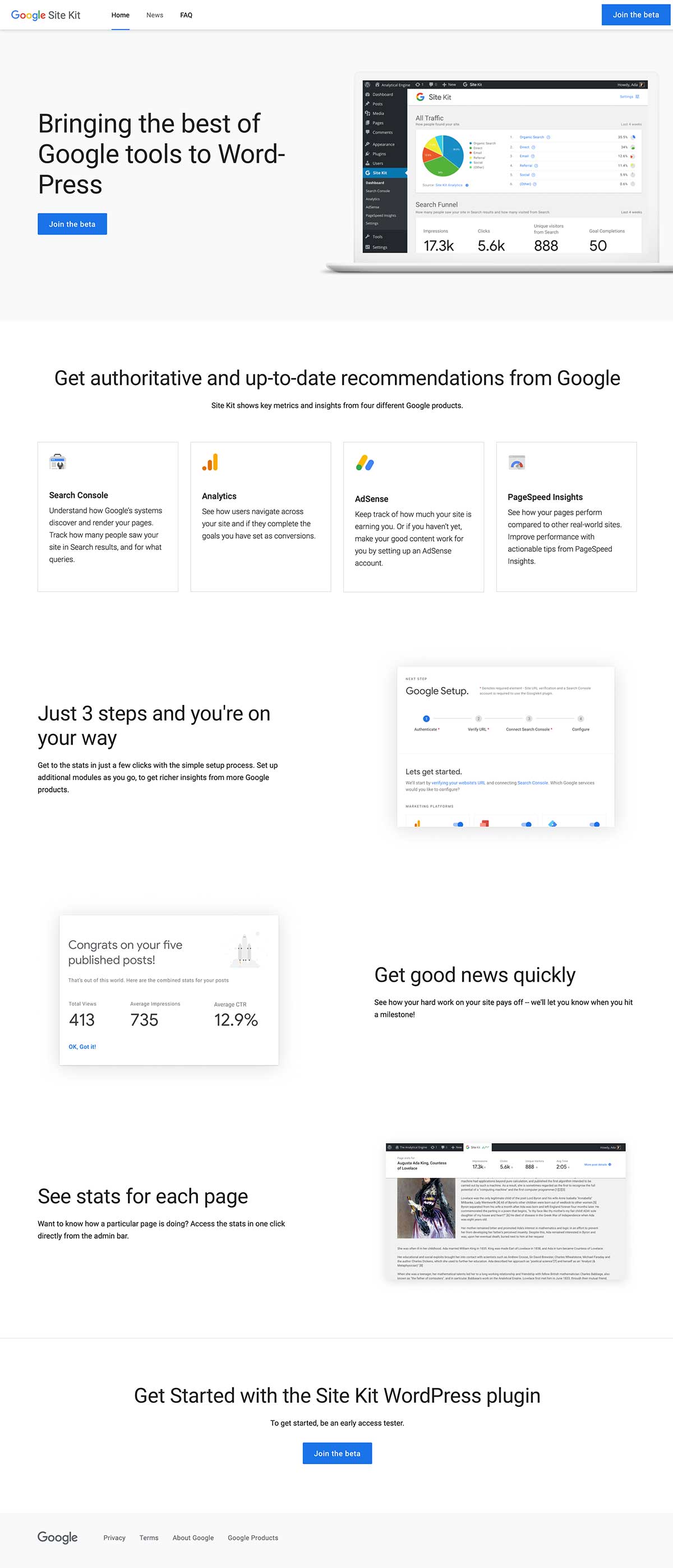 Google公司目前针对WordPress网站发布了插件Site Kite测试版, https://sitekit.withgoogle.com。