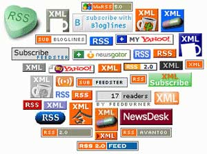 您应该会发现您喜欢的网站或博客上有很多按钮和微件,其中或许有一个桔色按钮,旁边注明订阅数量,名称叫做RSS、XML、ATOM或者其他——其实都是指向RSS Feed地址。按钮各种各样,以下有些您可能见过: