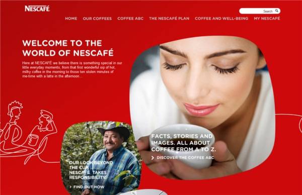 雀巢咖啡使用图像和文字引导访问者认识他们的品牌。